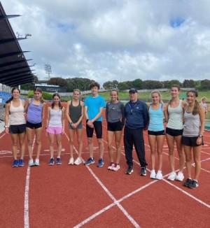 In the USA collegiate system Kim is an absolute superstar. She has run u20 NZ records for 1mile and 1km. In April 2023 Kim set a Providence all-time record of 2m5.0s for the 800m and then went on to run a sizzling 4m11 leg, anchoring her team to win the 4x1500m at the Penn Relays. In February 2024 she dominated the Big East Championships, breaking a 20-year-old 3000m record, running 8m54. She then followed it up in March with a bronze medal in the NCAA Indoor 1500m championships and a silver medal in the NCAA Outdoor 1500m championships. All of the team are proud of Kim and what she is achieving. She might be a superstar in the USA but is not too famous to join in with the team whenever she visits New Zealand.